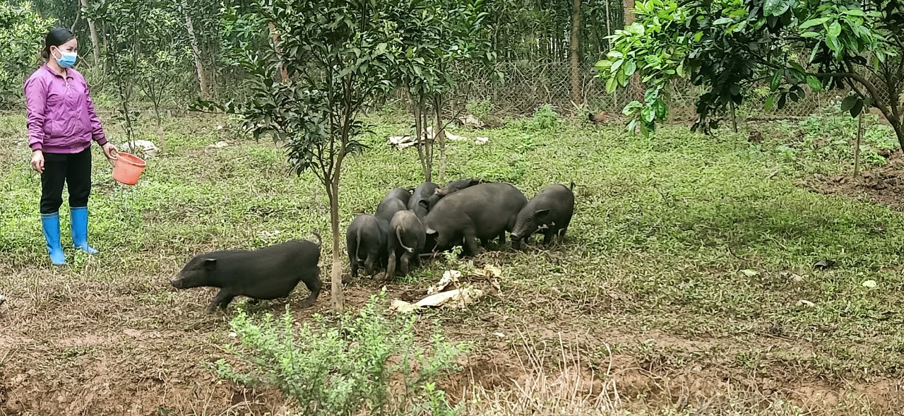 Với bản năng của người phụ nữ cần cù, chịu khó đến nay chi đã gây được 8 con lợn nái sinh sản và kết hợp với đầu tư trồng cây ăn quả với diện tích 1.200 m2 và trên 100 con gia cầm (Gà mái đẻ, ngan); không phụ lòng người, những đồng vốn đầu tư ít ỏi của gia đình chị từng bước mang lại hiệu quả, thu nhập, đời sống sinh hoạt của gia đình chị được cải thiện rõ rệt theo hướng năm sau cao hơn năm trước. Gia đình chị đang cho thu nhập ổn định, từ chăn nuôi lợn quay, trứng gà ta và cam. Bình quân mỗi năm gia đình chị thu hoạch từ chăn nuôi khoảng 130 triệu đồng.