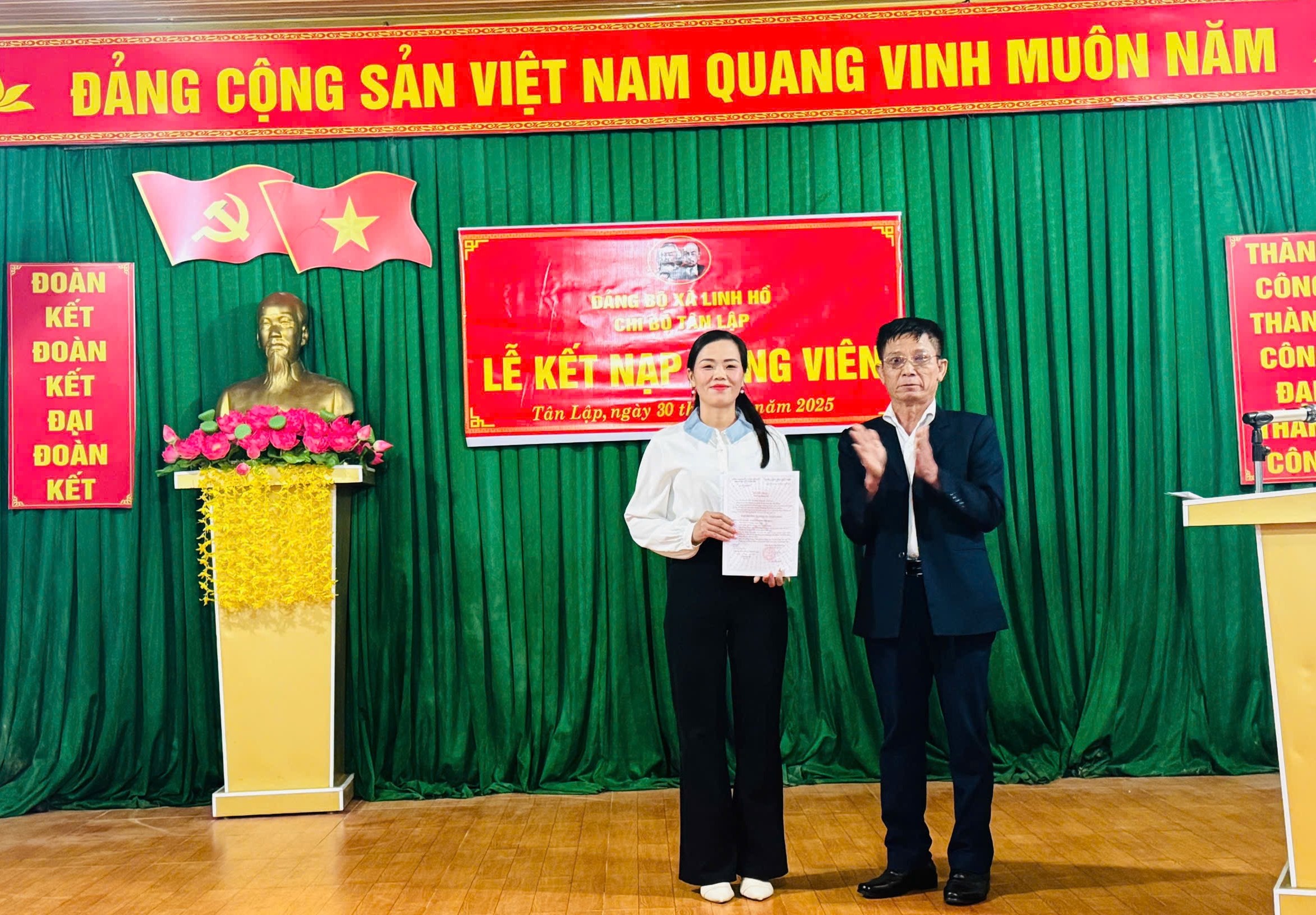 Thực hiện Kết luận số 36-KL/ ĐU, ngày 27/11/2025 của Ban Thường vụ Đảng ủy xã Linh Hồ về công tác tổ chức bộ máy cán bộ. Ngày 30/12/2025, Chi bộ thôn Tân Lập, xã Linh Hồ, tỉnh Tuyên Quang tổ chức lễ kết nạp Đảng viên cho quần chúng ưu tú Chương Thị Hiền. Dự có các Đồng chí Vi Khánh Hoà - Phó Bí thư Thường trực Đảng ủy xã; Lý Quốc Hưng - Phó chủ tịch UBND xã; tổ công tác Ban Thường vụ Đảng ủy xã và các Đảng viên trong chi bộ, đoàn thể thôn.